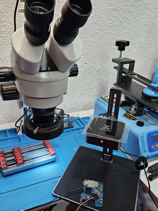 También realizamos reparaciones de móviles mojados, software (y eliminación de malware), reparación de cortocircuitos/fugas, placas base, circuitos integrados (reballing), traspaso de información y somos expertos en microsoldadura.